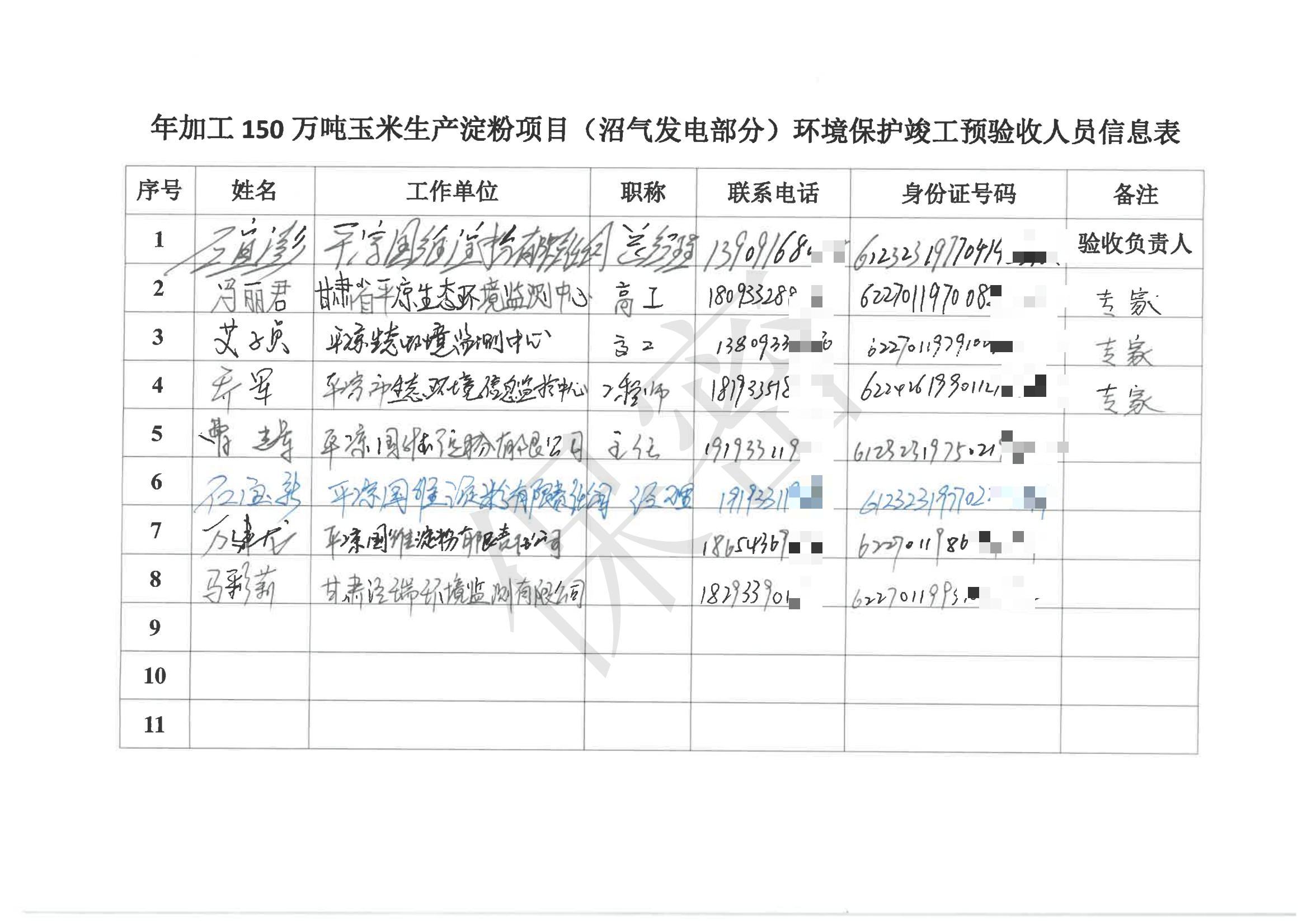 平?jīng)鰢S淀粉有限責(zé)任公司年加工150萬噸玉米生產(chǎn)淀粉項目(沼氣發(fā)電部分)竣工環(huán)保驗收公示